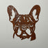 Diese Französische Bulldogge Wanddekoration ist eine wunderschöne Metalldekoration für Ihr Zuhause oder Ihren Garten. Der Französische Bulldogge ist mit Löchern zum Aufhängen ausgestattet. Es besteht aus Corten