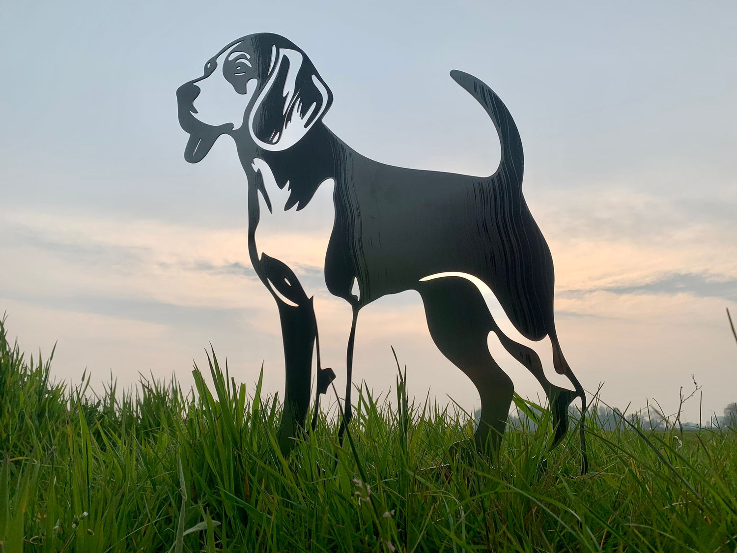 Our garden stakes and wall decorations in the shape of various metal dog silhouettes, a playful addition to any outdoor space.